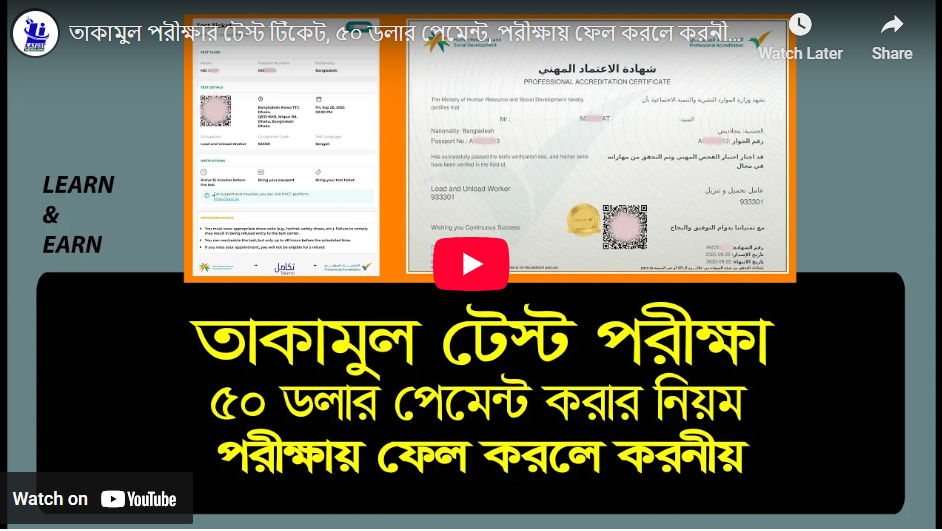 তাকামুল পরীক্ষার টেস্ট টিকেট, ৫০ ডলার পেমেন্ট, পরীক্ষায় ফেল করলে করনীয়।। #TAQAMUL #SVP #saudiarabia