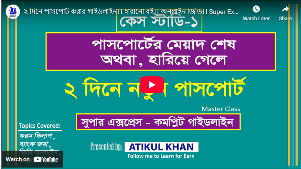২ দিনে পাসপোর্ট করার গাইডলাইন।। হারানো বই।। অনলাইন জিডি।। Super Express E Passport A Challan