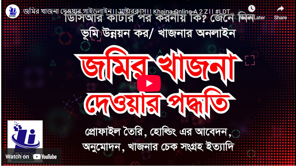 ভিডিও দেখে সহজেই খাজনা দেয়ার পদ্ধতিটি শিখুন এখানে ক্লিক করে।