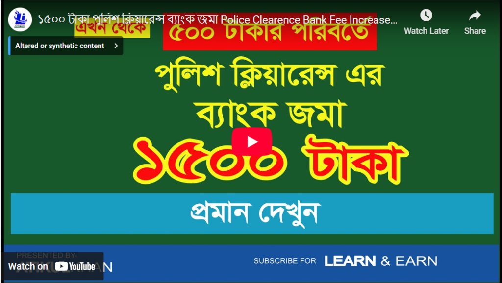 ৫০০ টাকার পরিবর্তে ১৫০০ টাকা পুলিশ ক্লিয়ারেন্স ব্যাংক জমা ।। Police Clearence Bank Fee Increase 500 to 1500 BDT